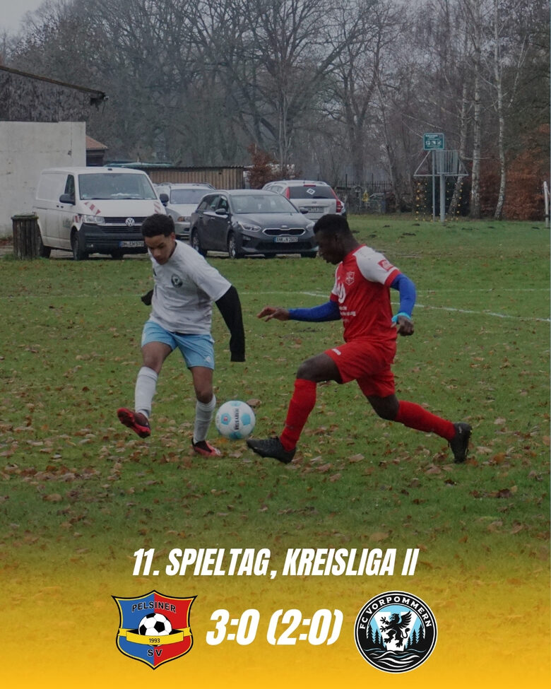Die Mannschaft des Pelsiner SV baut seine Serie weiter aus. Am zweiten Adventswochenende empfing die Elf von Trainer Marcel Christen den neu gegründeten FC Vorpommern auf dem PSV-Sportplatz in Stretense und konnte diesen am Ende relativ souverän mit 3:0 bezwingen. Somit beendet das Team um Kapitän Hendrik Netz die Hinrunde der aktuellen Kreisliga-Saison mit fünf Siegen in Folge auf dem dritten Tabellenplatz, punktgleich mit dem Zweiten SV Züsedom. Zum Spielbericht