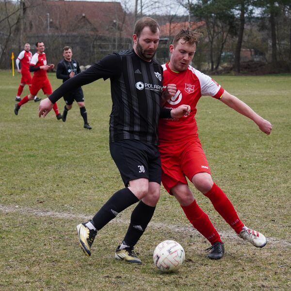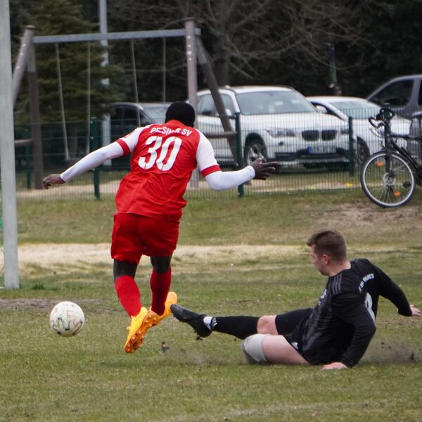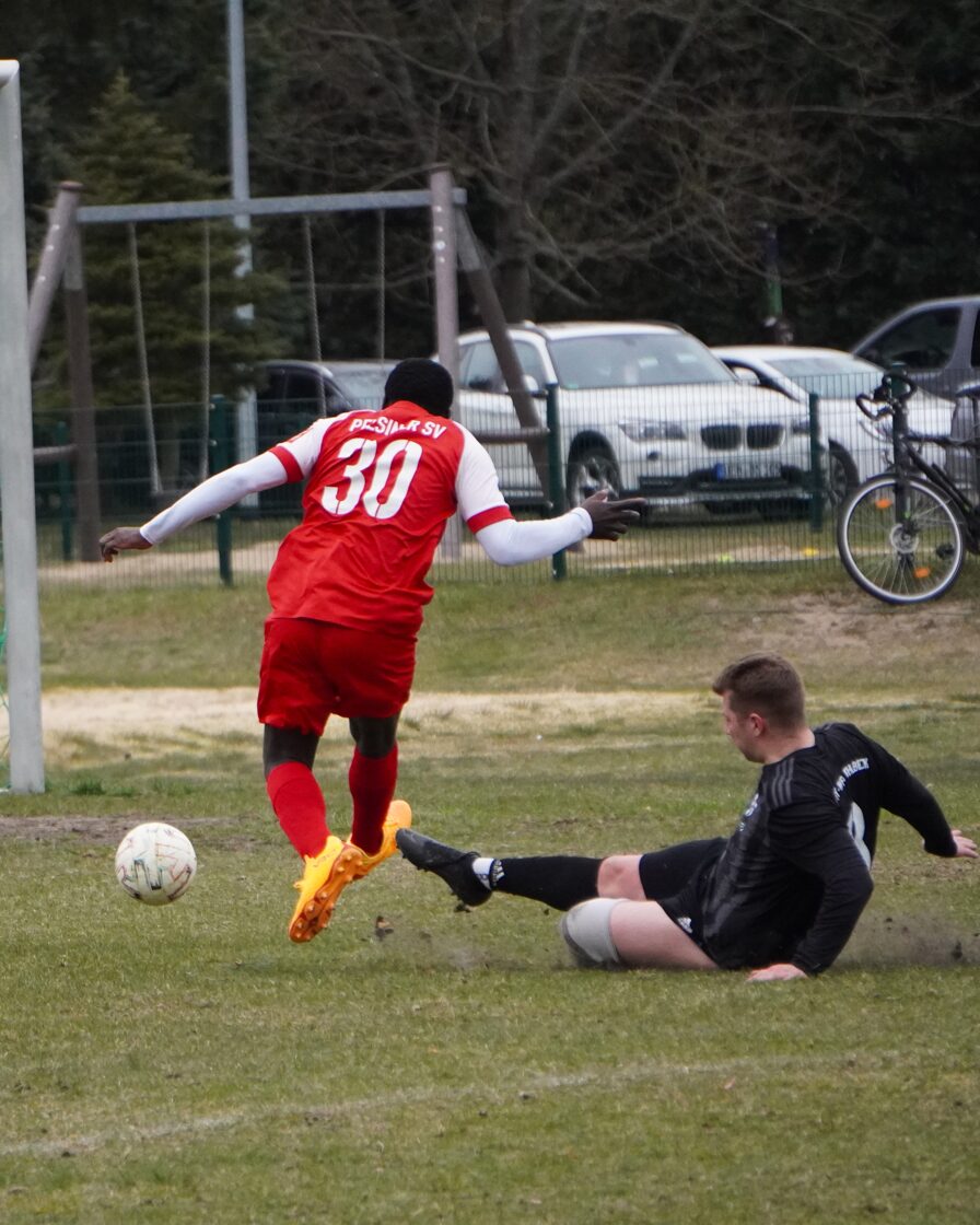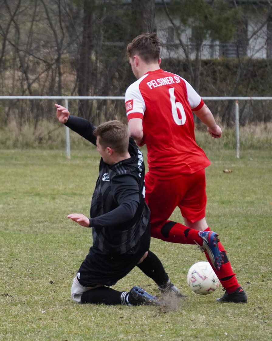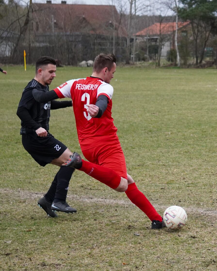 Gastgeber Rot-Weiß Ahlbeck zeigte von Anfang an, wer Herr im Hause sein soll, und presste die Pelsiner bereits weit in der eigenen Hälfte. So geriet die PSV-Defensive schon früh im Spiel unter Druck und wurde zu Fehlern gezwungen. Am Ende einer Fehlerkette wollte Müller einen Rückpass auf Torhüter Daniel Schumacher spielen, ein Ahlbecker Angreifer hatte diesen Braten jedoch gerochen und spitzelte mit dem Fuß dazwischen. Schumacher kam heraus und wollte noch klären, kam jedoch zu spät und räumte seinen Gegner regelwidrig ab. Den fälligen Foulelfmeter verwandelte Ahlbecks Julian Ladwig souverän zur frühen 1:0-Führung (5.). In der Folge erholte sich die Pelsiner Mannschaft um Kapitän Hendrik Netz aber von dem Kaltstart in die Partie und fand immer besser rein. Defensiv stand man nun sicherer und so traute man sich ein ums andere Mal nach vorn. Klare Torgelegenheiten blieben trotz einiger Standardsituationen jedoch aus. Nach gut 20 Minuten folgte der bittere Moment, welcher den Fußball an diesem Nachmittag zur Nebensache degradierte: Florian Wegner wollte an der Außenlinie einen Ball aus der Luft kontrollieren, geriet dabei unter leichten Gegnerdruck und landete unglücklich auf seinem Standbein. Dabei verdrehte er sich das Knie so schwer, dass eine sofortige medizinische Behandlung notwendig wurde. Infolge der Verletzung musste die Partie für über eine halbe Stunde unterbrochen werden. Der Rettungsdienst wurde umgehend gerufen und brauchte PSV-Akteur ins Krankenhaus. Nach der langen Unterbrechung entschieden sich beide Mannschaften zwar, die Partie fortzusetzen, allerdings war beim PSV deutlich zu spüren, dass die Ereignisse ihre Spuren hinterlassen hatten. Die Köpfe waren verständlicherweise nicht mehr frei, die Gedanken vielmehr beim verletzten Mitspieler. Rot-Weiß Ahlbeck nutzte diese Phase konsequent aus und baute seine Führung bis zur Halbzeit auf 4:0 aus.