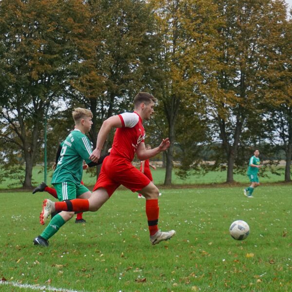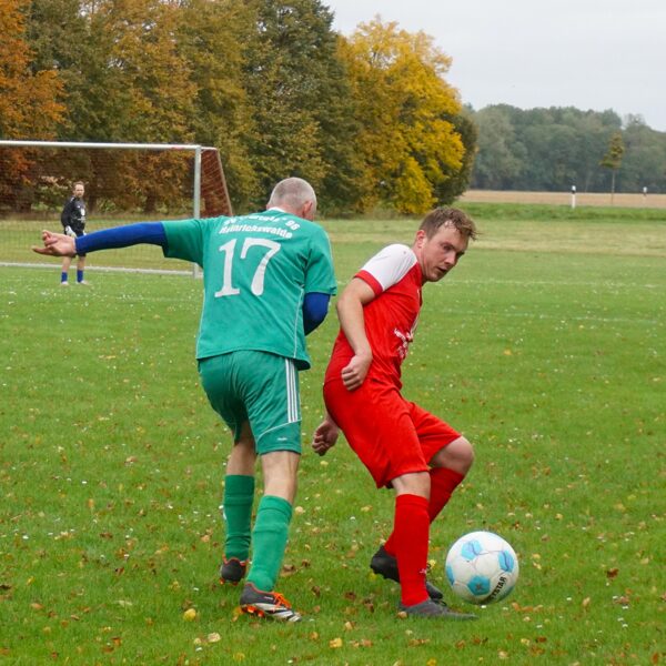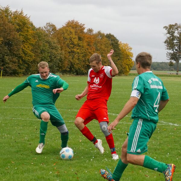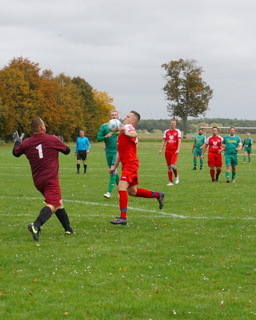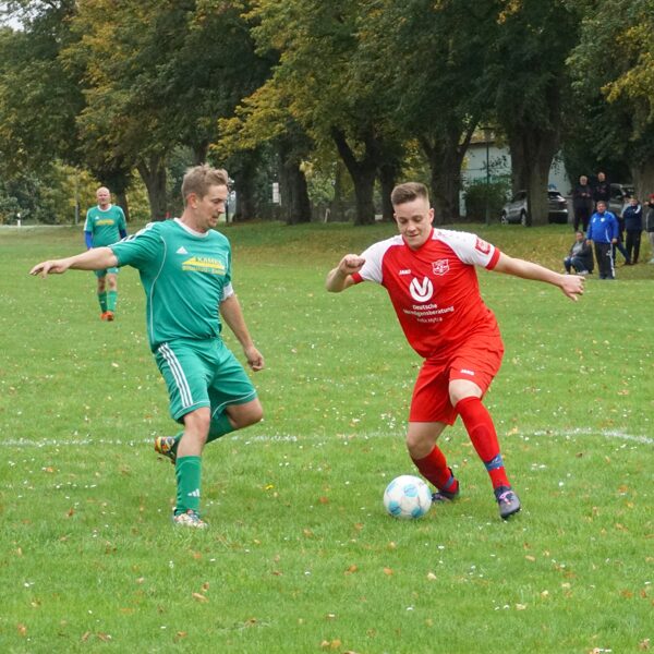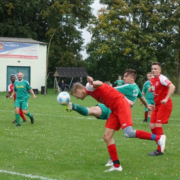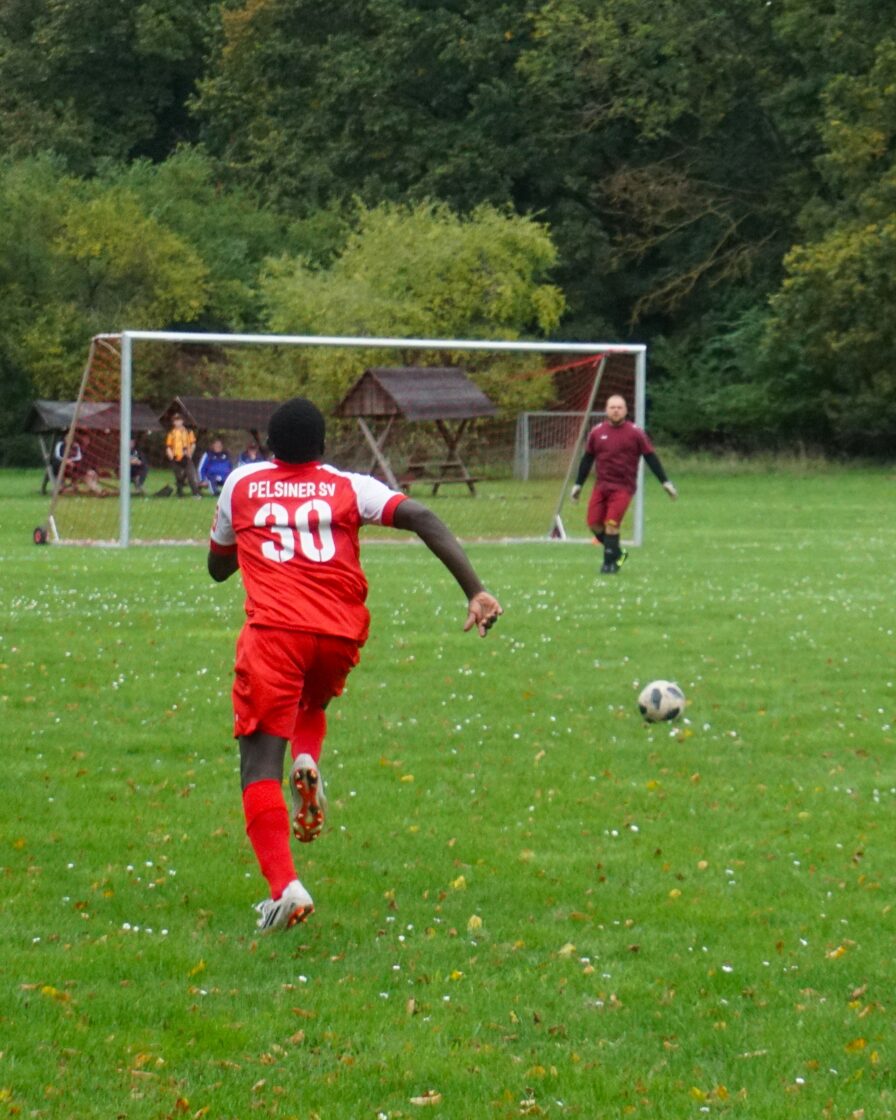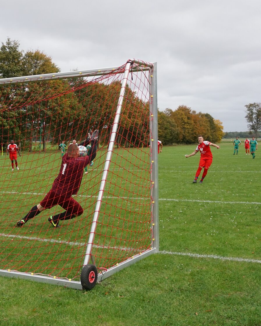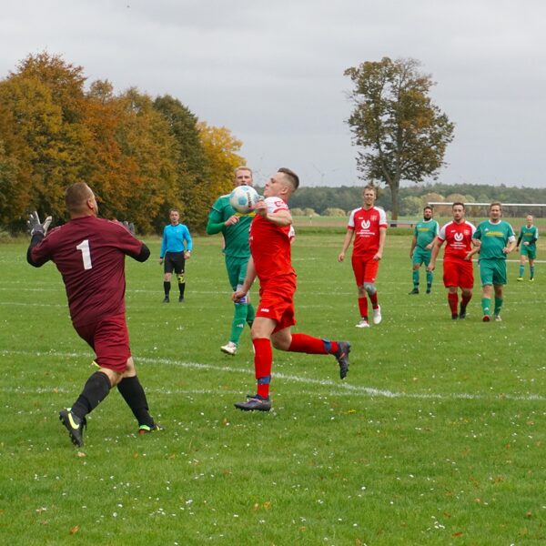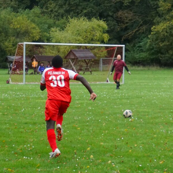 Wie eine Woche zuvor spielte der PSV von Beginn an nach vorn und hätte gern erneut ein frühes Tor zur Führung erzielt. Doch Luca Hüthwohl, der Torhüter der Gäste, hatte da einiges dagegen und war gegen Michel Geserick zur Stelle, der im Strafraum nach einem Freistoß an die Kugel kam und am SG-Schlussmann scheiterte. Im weiteren Verlauf stand Hüthwohl des Öfteren einer Pelsiner Führung im Weg, aber auch die Defensive der Gäste machte einen ordentlichen Job beim Abwehren der etlichen Pelsiner Angriffswellen. Nach vorn trat die SG Jatznick/Heinrichswalde überhaupt nicht in Erscheinung. Aushilfskeeper Frost bekam nichts zu tun, da die Viererkette Fischer/Müller/Reinke/Uteß jegliche Angriffsversuche bereits im Keim erstickte. Eigentlich war es nur eine Frage der Zeit, ehe der PSV verdient in Führung gehen würde. Doch wie so oft im Fußball, kommt es dann ganz anders. Eine Ecke der Gäste erwischte Uteß im Fünfmeterraum unglücklich und überwand so den eigenen Keeper (33.). Die Führung für die Spielgemeinschaft fiel damit aus dem absoluten Nichts. Die Mannschaft um Kapitän Hendrik Netz steckte allerdings nicht auf spielte weiter nach vorn. In der 39. Minute kam Paul Hirsch an der Strafraumkante an den Ball, legte ihn mit der Brust am herauseilenden Torwart vorbei, der ihn dann mit der Faust im Gesicht erwischte. Den fälligen Foulelfmeter übernahm dann der gefoulte Hirsch selbst – und auch war es wie so oft im Fußball: ‚Der gefoulte soll keinen „Elfer“ schießen!‘ Dementsprechend parierte Hüthwohl den halbhoch getretenen Strafstoß (40.). Zwei Minuten später war der Spielverlauf dann endgültig auf den Kopf gestellt. Einen langen Abschlag von Hüthwohl unterlief Müller als letzter Mann, wodurch Jatznick/Heinrichswaldes Vendt freie Bahn auf Frost hatte und eiskalt zum 0:2 verwandelte (43.). Während die Gäste berechtigterweise jubelten, trauten die Zuschauer am PSV-Sportplatz in Stretense ihren Augen nicht, wie die Pelsiner hier mit 0:2 zurückliegen konnten. Kurz vor dem Pausenpfiff sorgte Rachid Mohammad jedoch noch für ein Lebenszeichen, als er nach einem tiefen Ball von Dennis Reinke frei vor Hüthwohl auftauchte und Bann vor dem gegnerischen Tor brach (45.)!