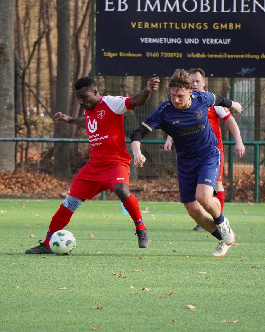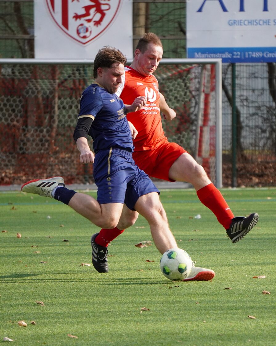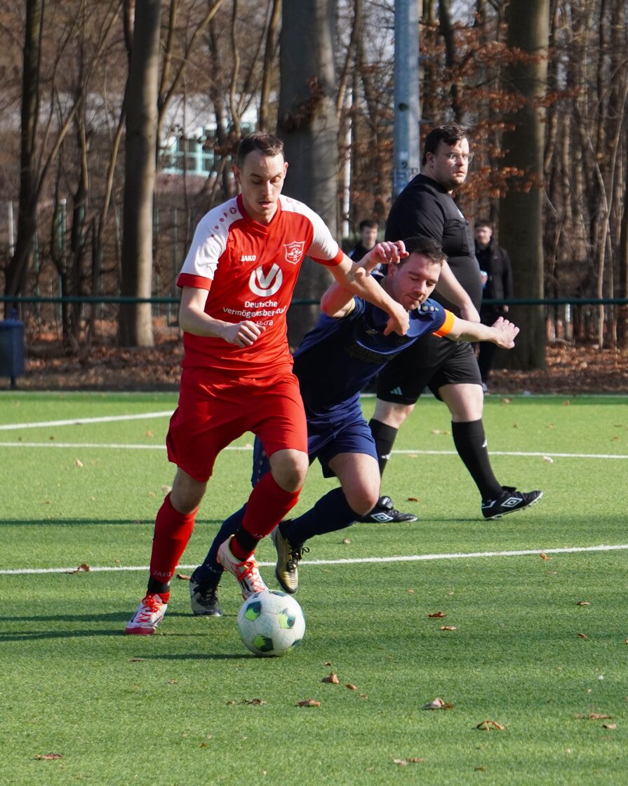 Winterrost war hier genau das richtige Stichwort, denn der steckte den meisten Kreisligafußballern des PSV noch sichtlich in den Knochen. Zudem konnte Chef-Trainer Marcel Christen wegen unzähliger krankheitsbedingter Ausfälle lediglich auf einen dezimierten Kader zurückgreifen und musste im Vorbereitungsspiel beim Tabellenvorletzten der Kreisliga Staffel I selbst über 90 Minuten ran. In einer ausgeglichenen ersten Halbzeit waren beide Mannschaften bemüht, ihren Rhythmus zu finden. Dabei stockte es vor allem offensiv noch ordentlich. Erfreulich jedoch aus Pelsiner Sicht: Der im Sommer verabschiedete beste Angreifer der letzten Spielzeit, Lars Herkules feierte ein überraschend frühes Comeback im Fußball. Währenddessen hütete der beste Torjäger der aktuellen Saison, Michel Geserick an diesem Tage den PSV-Kasten.